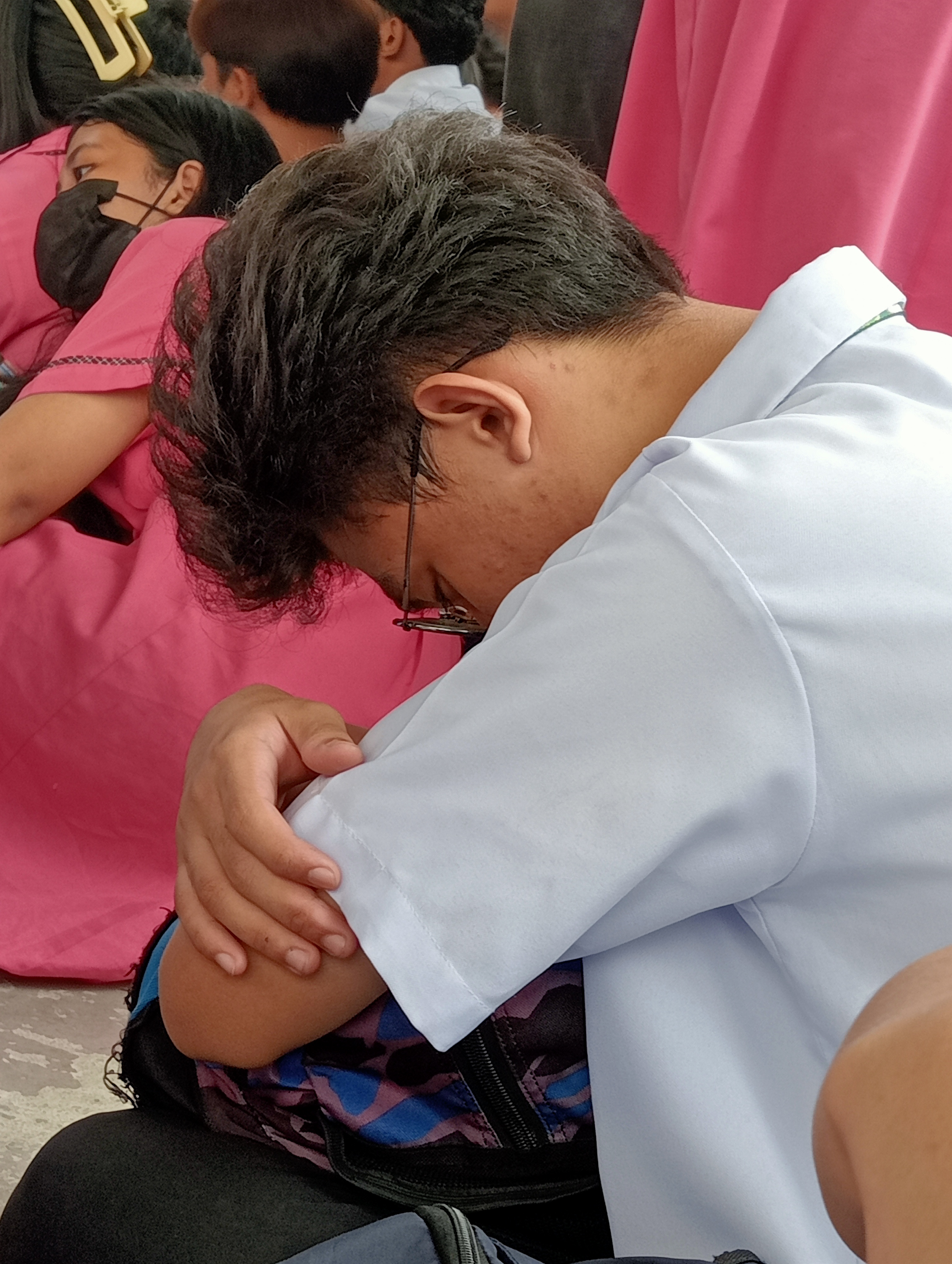- A picture of my classmate, Efraem, during the Hiphop Competition held last year in our school. The exhaustion was so immense that we had spent almost 4 hours after school waiting to watch our representatives perform.