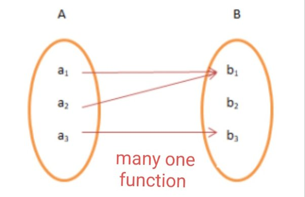 A many-to-one relation happens when at least two or more distinct inputs pair to the same item in the output.