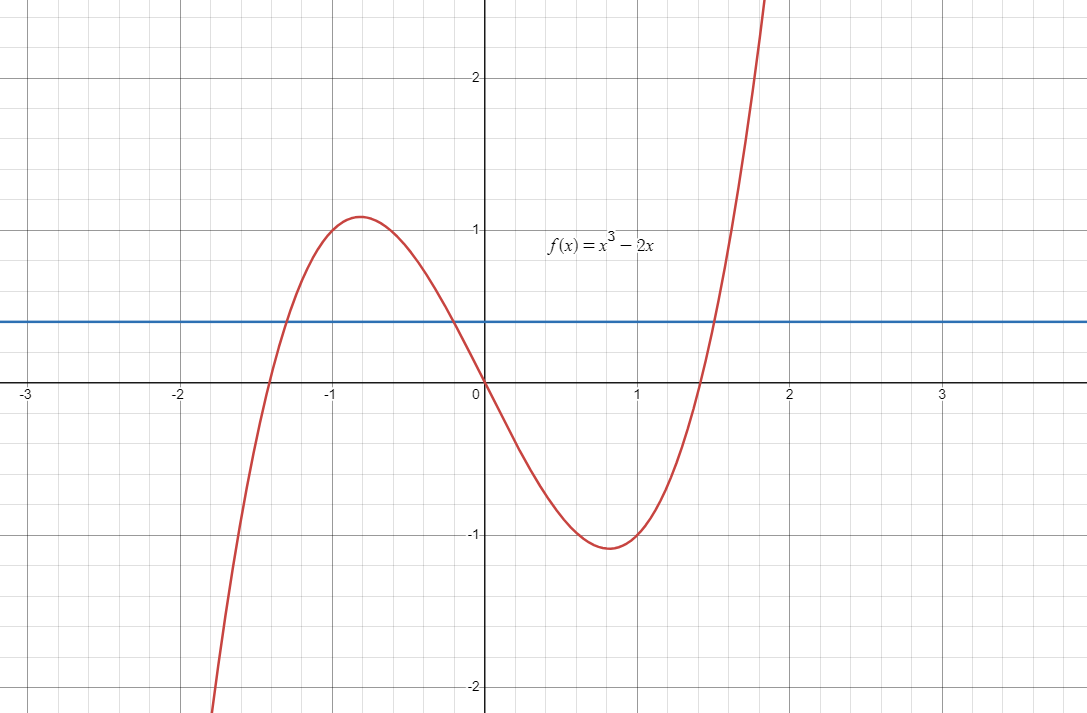 The graph of this function shows that a horizontal line intersects at three distinct points.