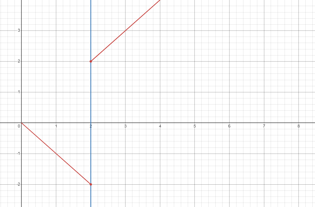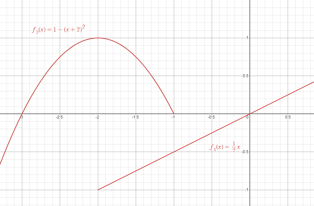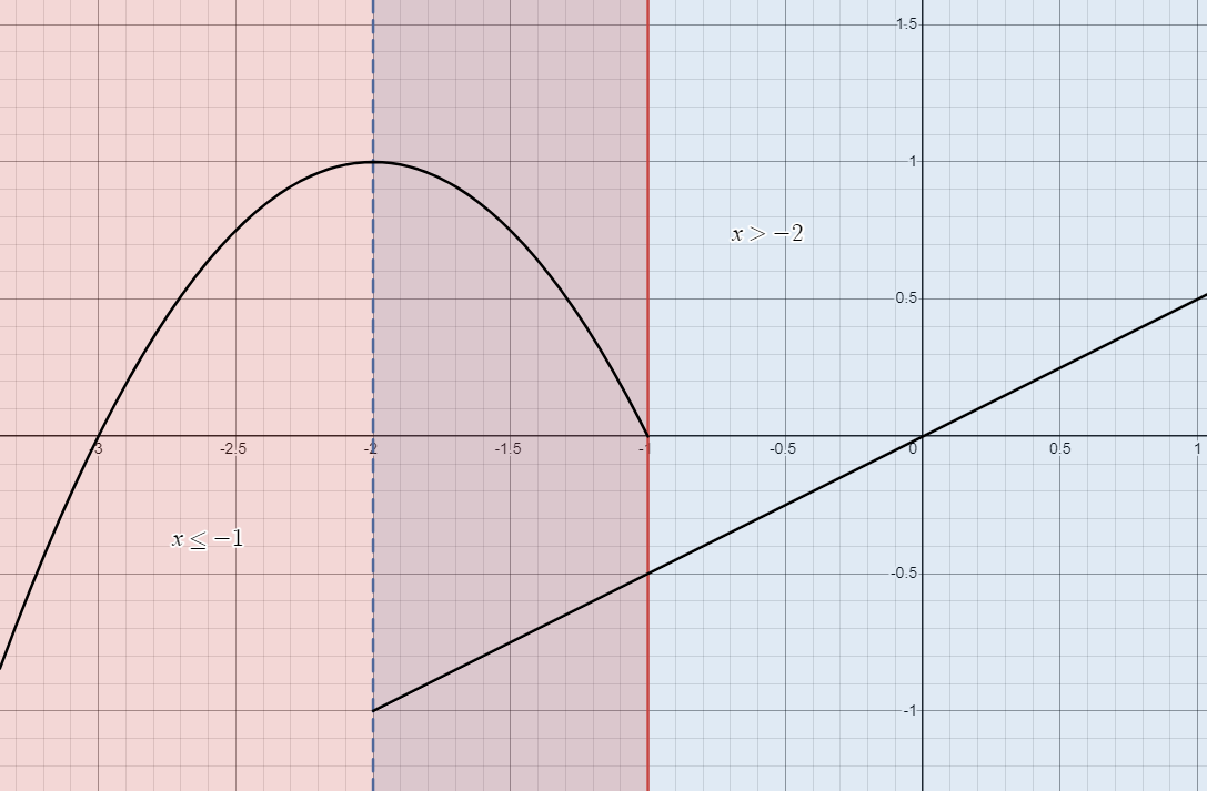 When , the input satisfies the first condition , therefore we use the function in orange .