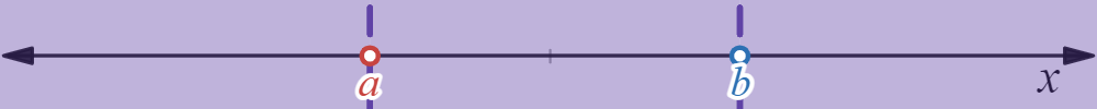 is strictly between and , not including or