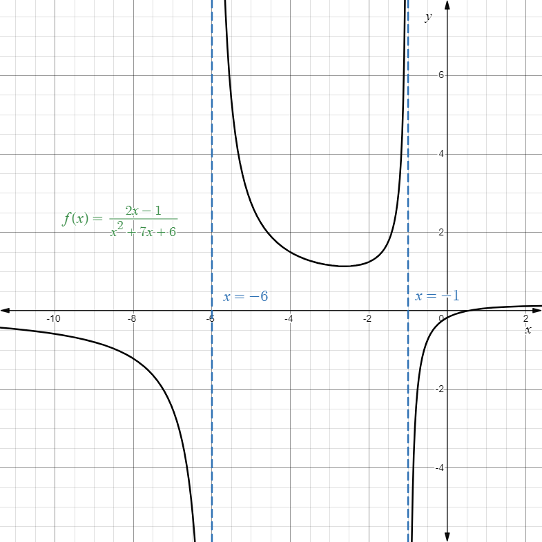 Solving them gives us the vertical asymptotes of , namely and .